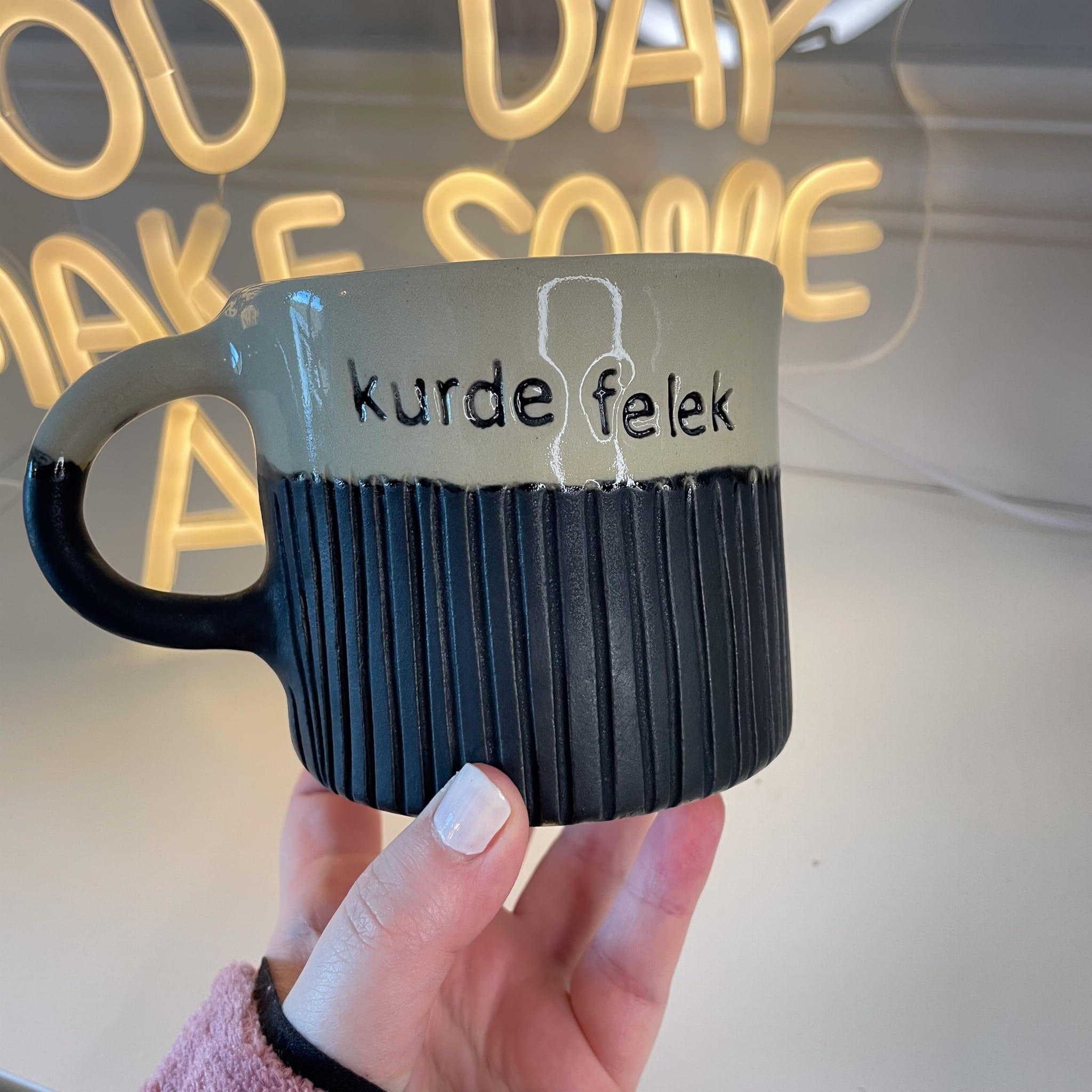 Minimalistyczny napis „ja jebie” kontrastuje z elegancką formą, tworząc połączenie estetyki i bezpośredniego humoru. To kubek idealny do porannej kawy, pracy zdalnej, spotkań online i wszystkich momentów, kiedy rzeczywistość wymaga krótkiego komentarza.