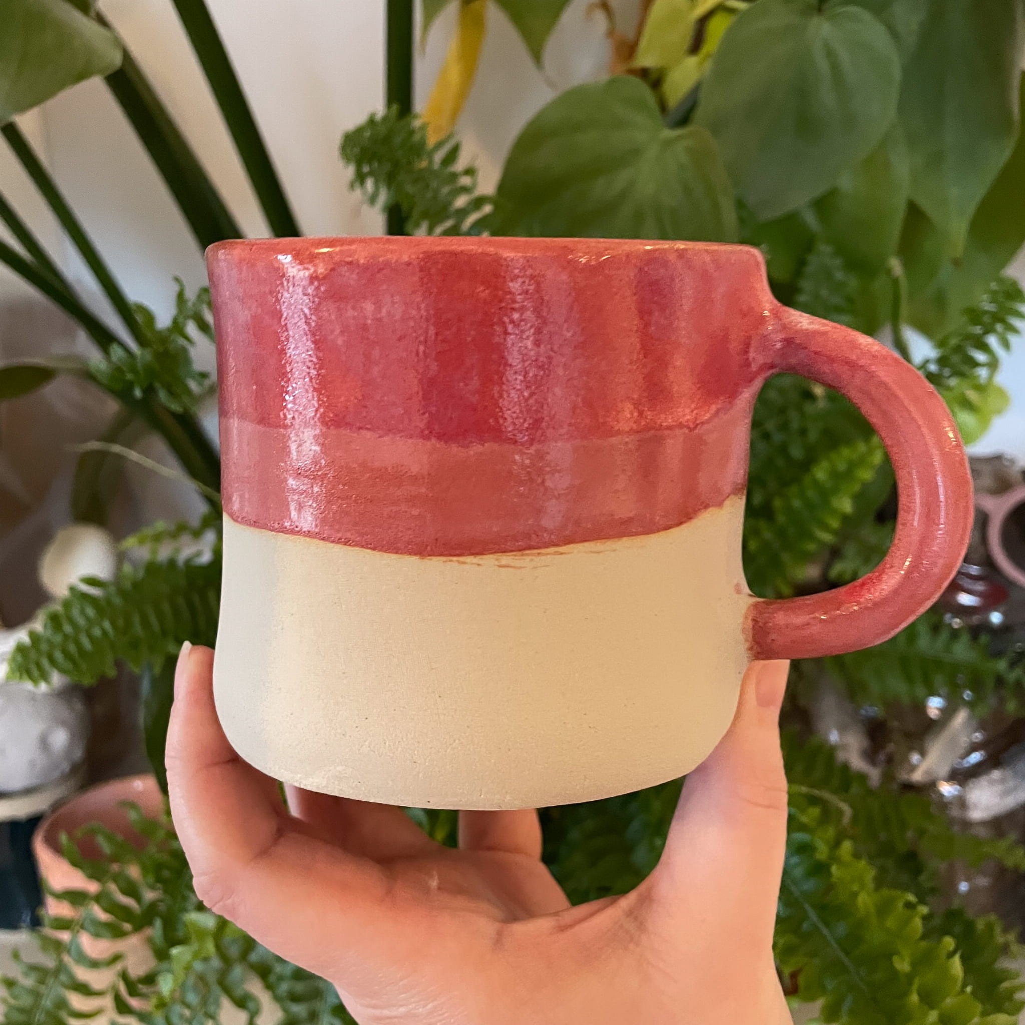 Każdy kubek powstaje ręcznie, od formowania po szkliwienie i wykonanie napisu. Naturalne różnice w kolorze, fakturze i delikatne nieregularności są cechą rzemiosła i sprawiają, że każdy egzemplarz jest unikatowy. Dwukolorowe szkliwo oraz wyraźnie zaznaczony napis nadają mu wyrazisty, ale estetyczny charakter.