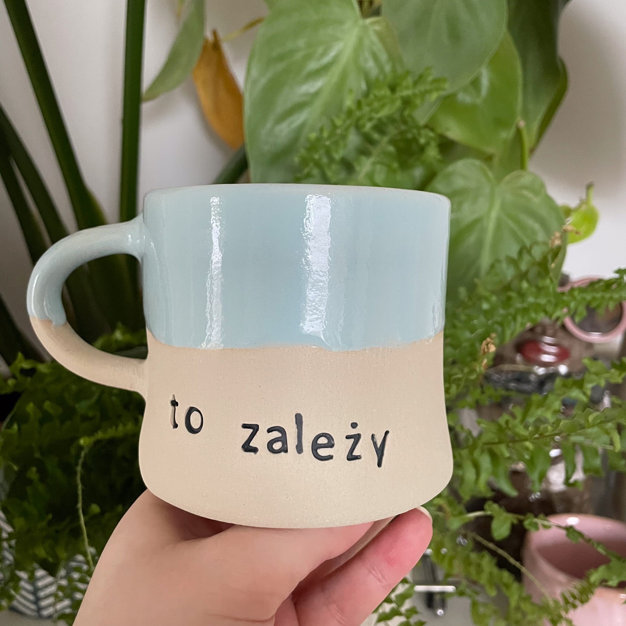 Kubek „To zależy” to propozycja dla tych, którzy lubią odpowiadać na wszystko z humorem i spokojem. Ręcznie lepiony z kamionki i szkliwiony w dwóch kolorach, każdy egzemplarz jest unikatem – delikatnie różni się od pozostałych drobnymi śladami pracy rąk, co nadaje mu wyjątkowego charakteru.