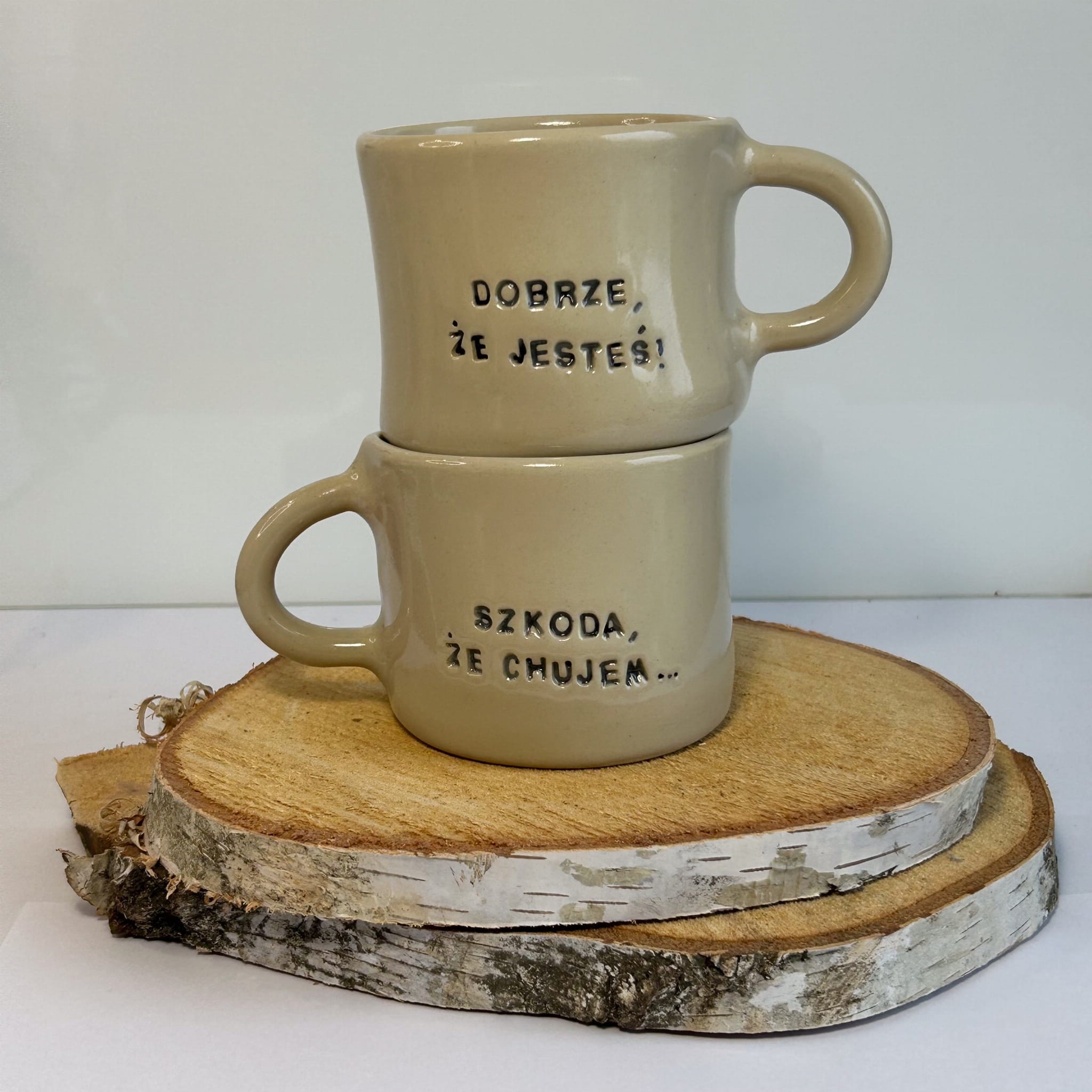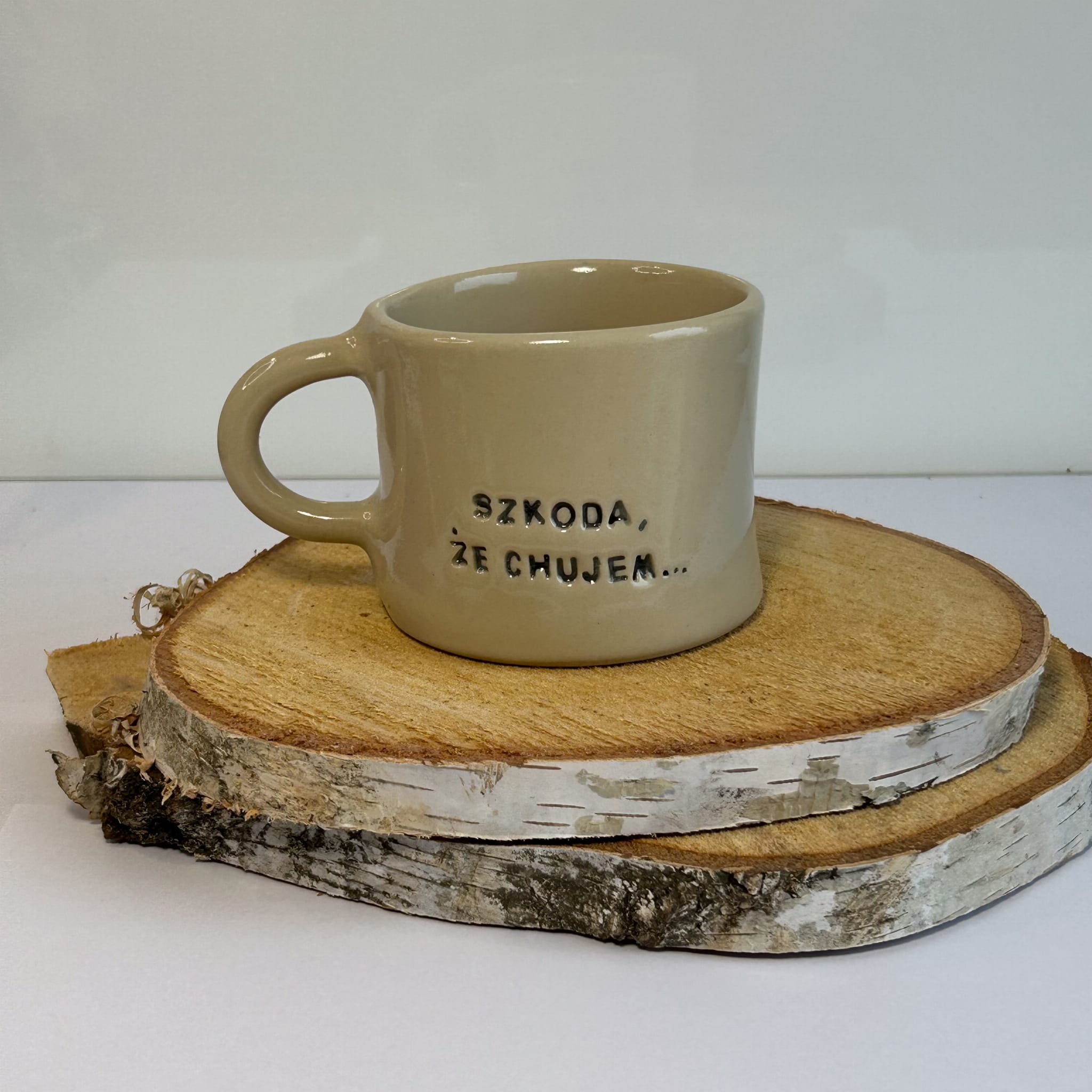 To ręcznie robiony kubek ceramiczny, który w jednym przedmiocie łączy czułość i ironię, dystans i prawdę, uśmiech i lekkie westchnienie. Idealny na poranną kawę, która zaczyna się optymistycznie… i na herbatę, kiedy już wszystko wiemy.