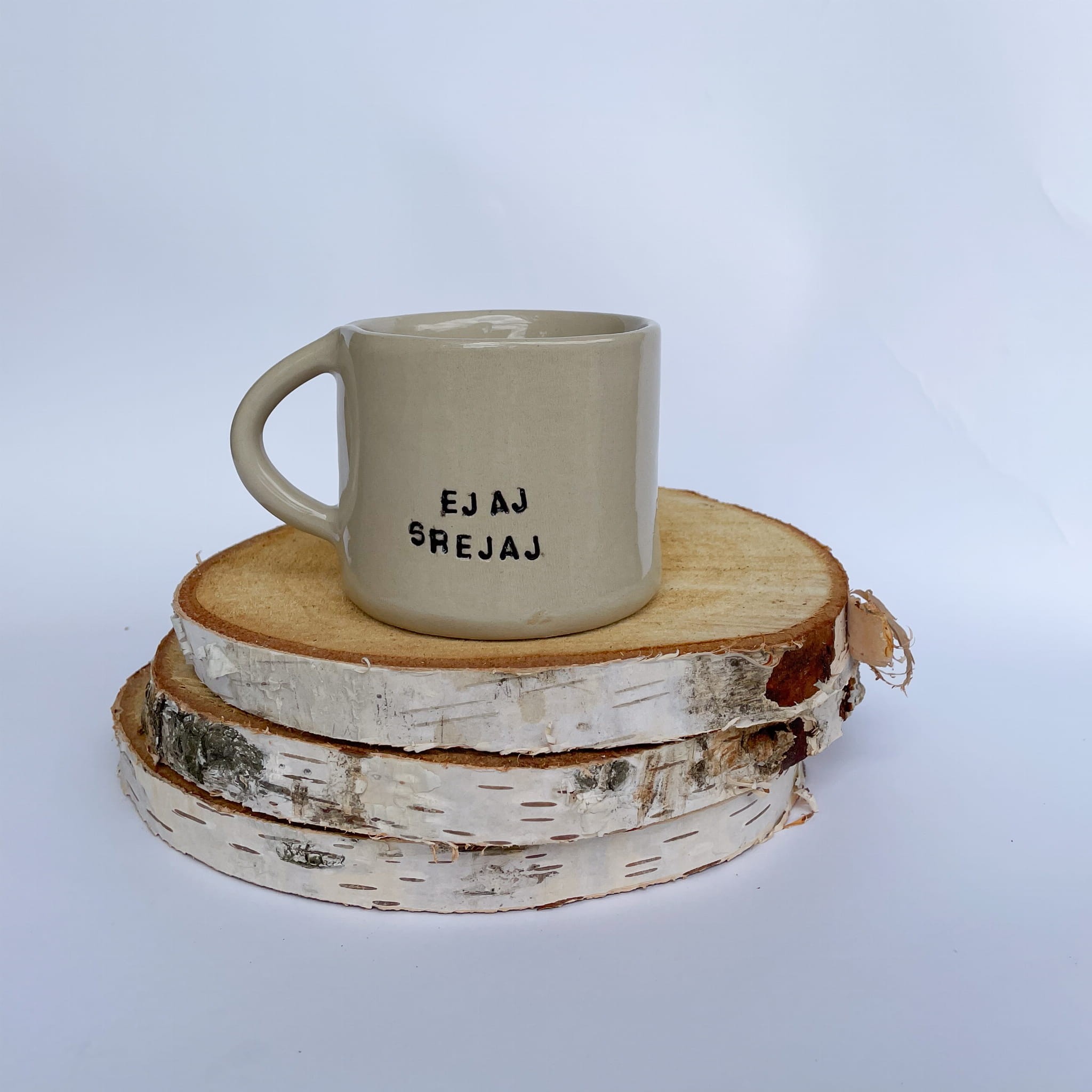 Kubek „Ejaj Srejaj” to połączenie prostoty, humoru i rzemiosła w najlepszym wydaniu. Ręcznie wykonany z beżowej gliny, utrzymanej w naturalnym, subtelnie nakrapianym odcieniu, idealnie wpisuje się w trend minimalistycznej ceramiki.