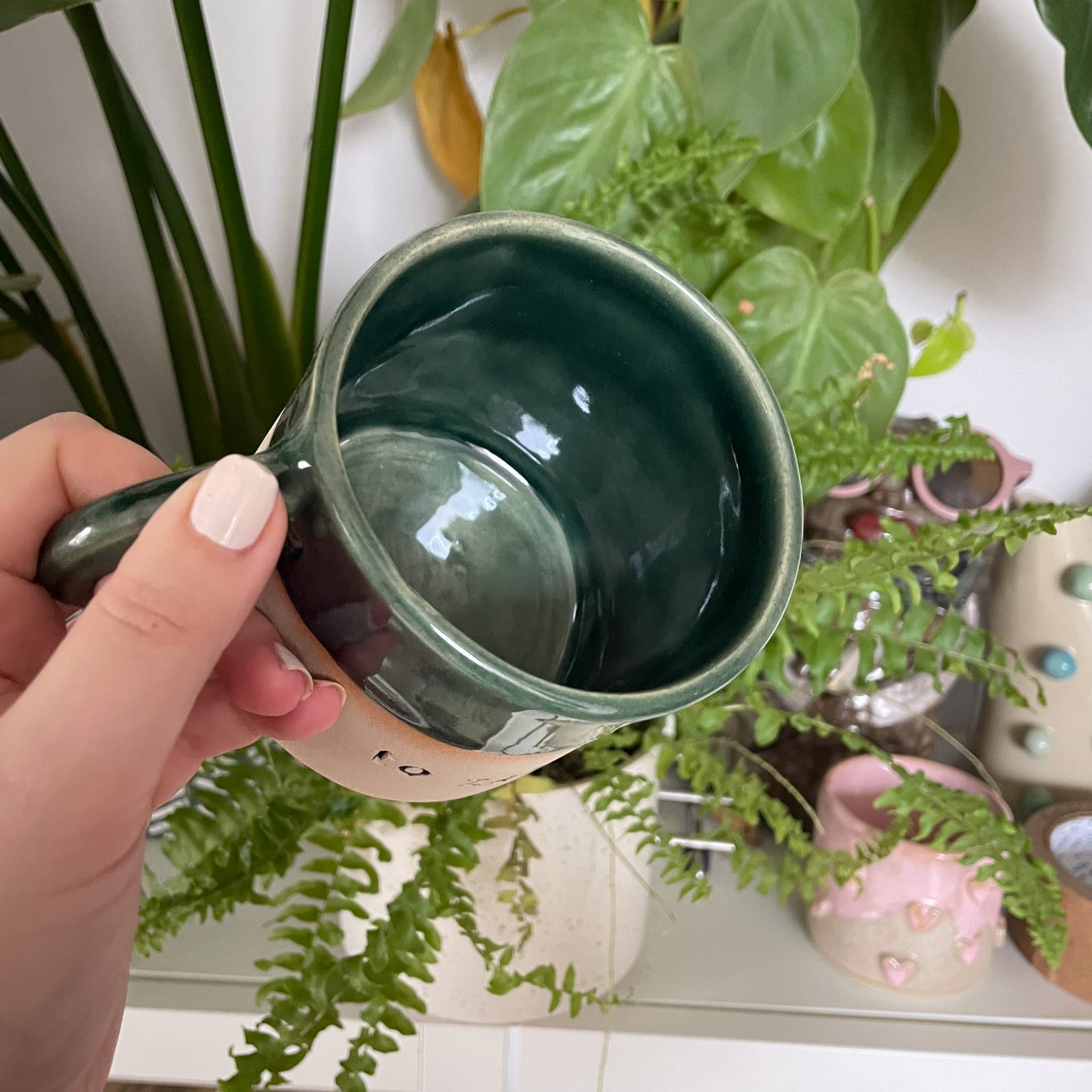Każdy egzemplarz tworzony jest ręcznie, dlatego posiada delikatne różnice w barwie szkliwa i fakturze, co czyni go unikalnym. Kubek nie tylko świetnie wygląda, ale jest również wygodny do codziennego użytku – na kawę, herbatę lub ulubione poranne espresso między callami.