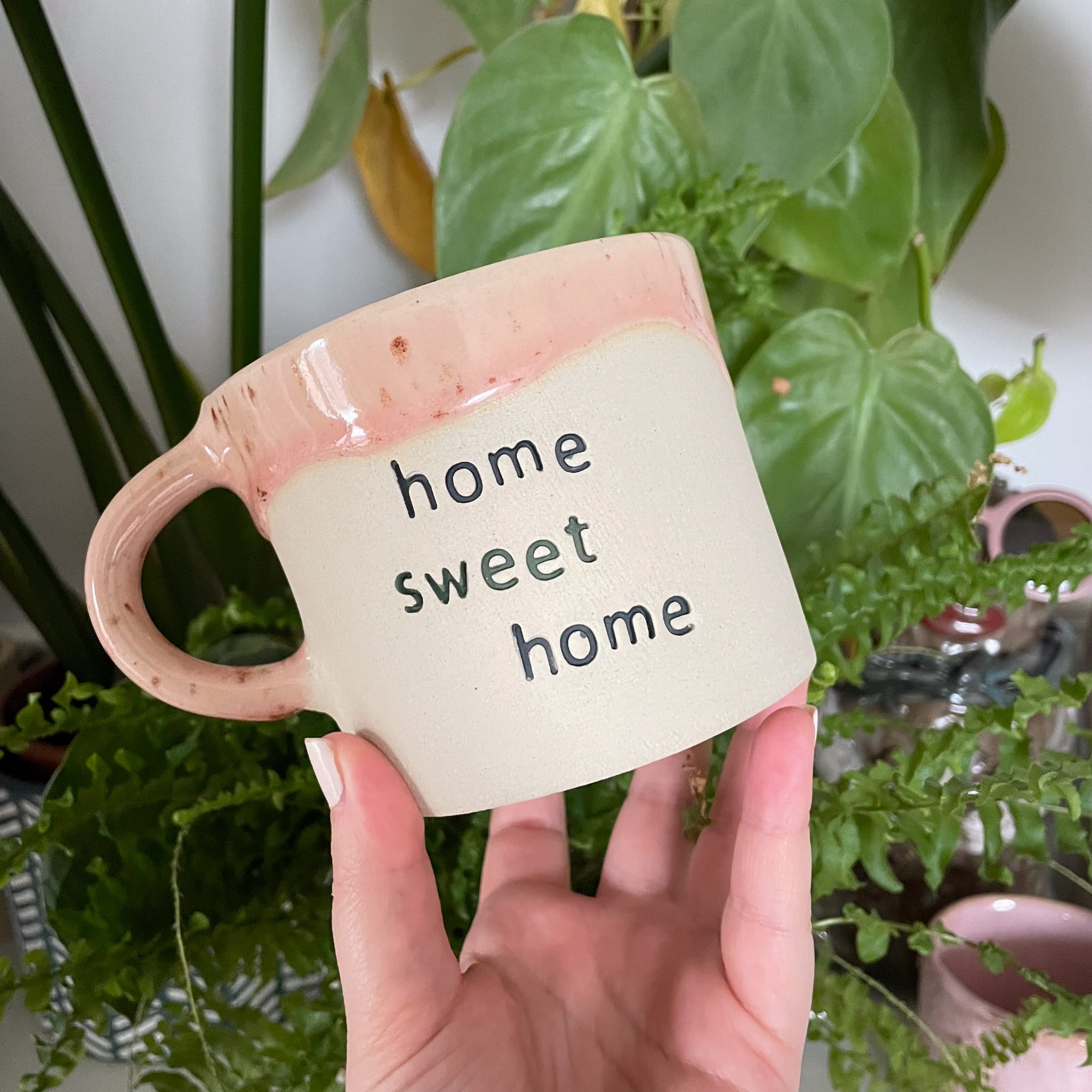 „Home Sweet Home” to więcej niż kubek – to ceramiczne przypomnienie, że najlepsze rzeczy dzieją się właśnie w domu. Każdy egzemplarz został ręcznie wykonany z gliny kamionkowej, wypalony w wysokiej temperaturze i pokryty szkliwem o ciepłym, różowym odcieniu.