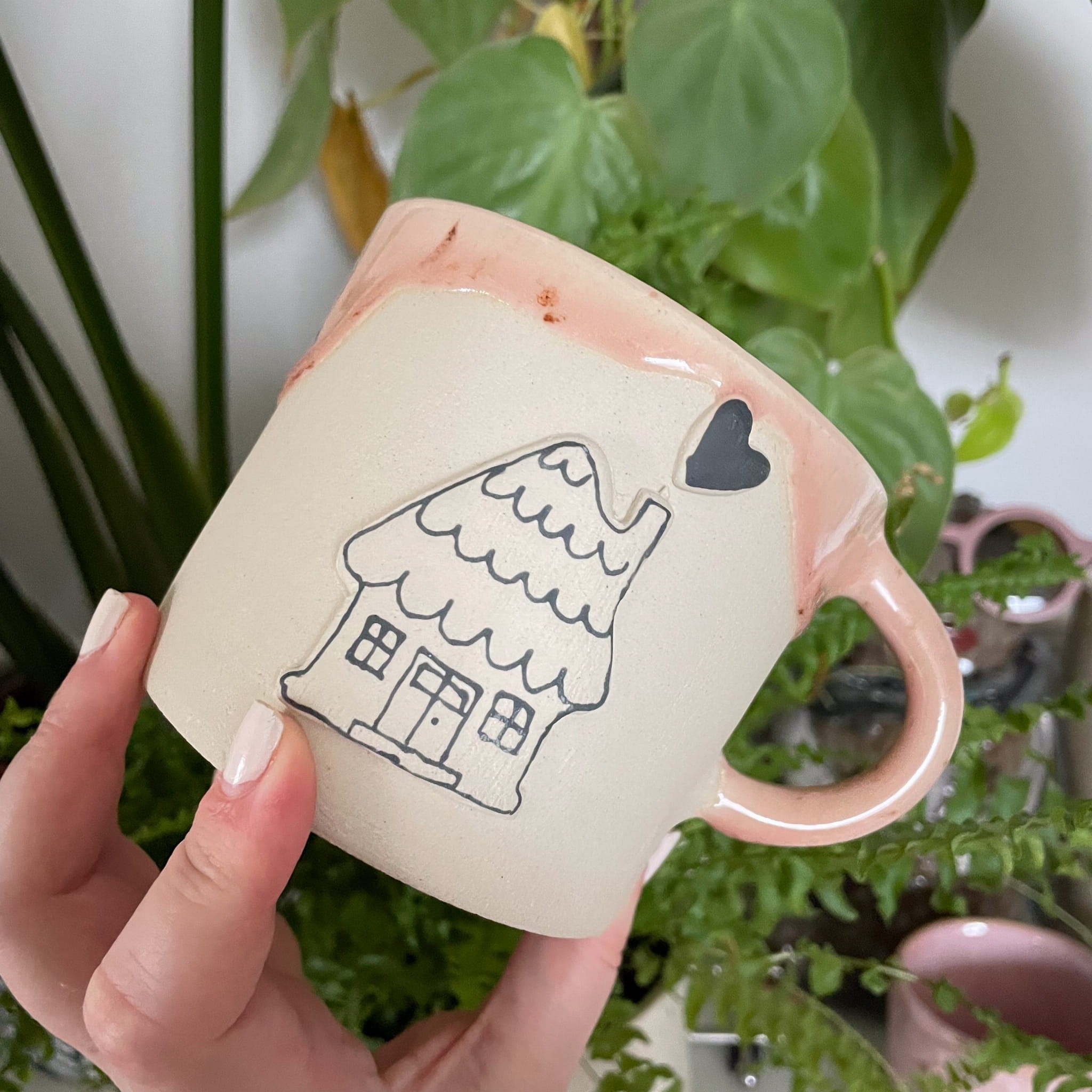 Z jednej strony – minimalistyczny napis, z drugiej – ręcznie rysowany domek z sercem. W środku zmieści się kawa, herbata albo kakao z piankami – wszystko, co daje poczucie spokoju.