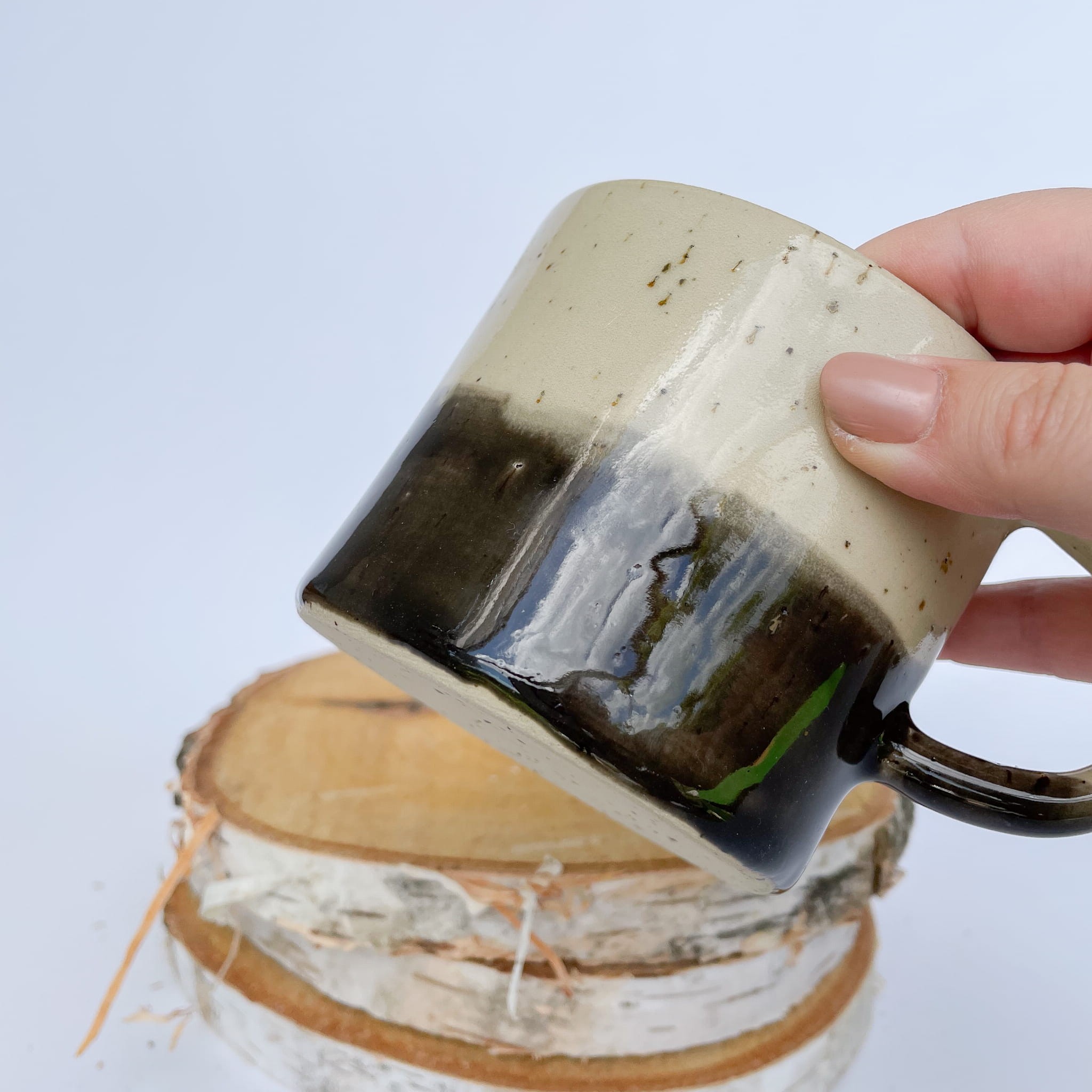 Kubek został wykonany z kamionki, wypalany w wysokiej temperaturze i pokryty bezpiecznymi szkliwami, dzięki czemu nadaje się do kontaktu z żywnością. Pojemność ok. 200 ml – idealna porcja na poranną kawę lub popołudniową herbatę.