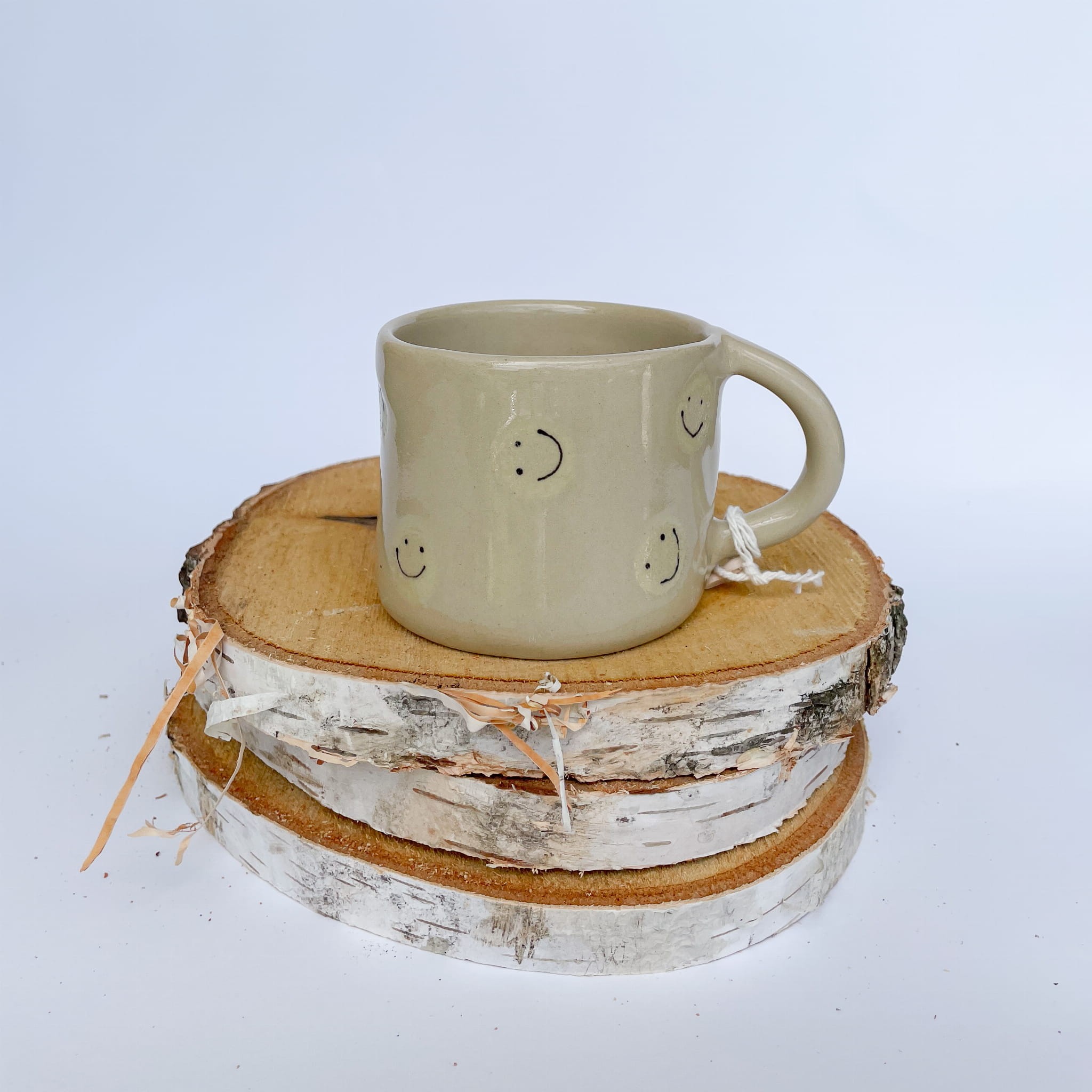 Kubek „Ja Jebię” w wersji beżowej z drobnymi, ręcznie malowanymi uśmiechniętymi buźkami to połączenie zabawnego napisu z pogodnym wzorem, który poprawi humor o każdej porze dnia. Delikatny beż tworzy neutralną bazę, a minimalistyczne buźki dodają mu lekkości i uroku.