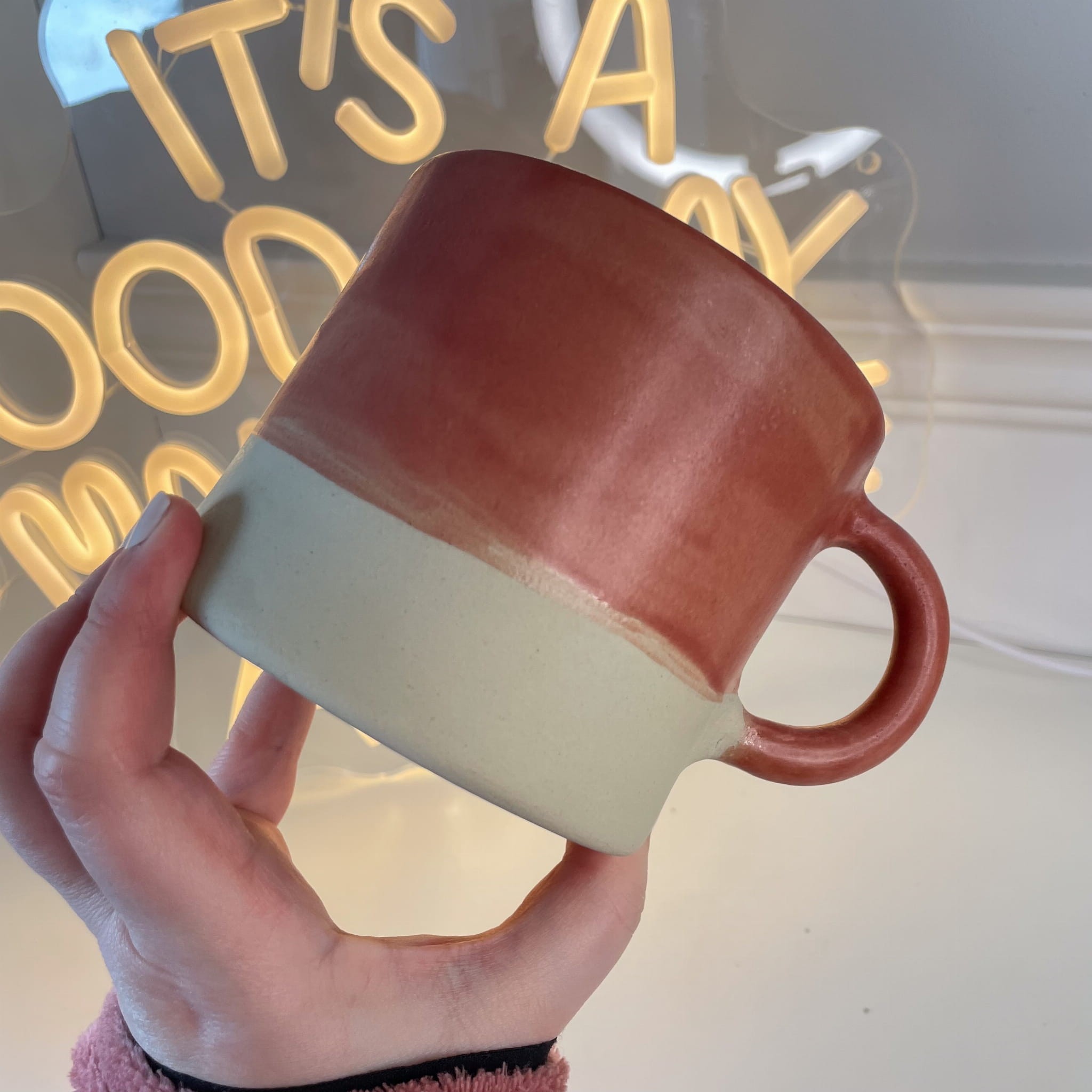 Każdy kubek powstaje ręcznie, dlatego drobne różnice w szkliwieniu i fakturze są naturalne dla ceramiki handmade.