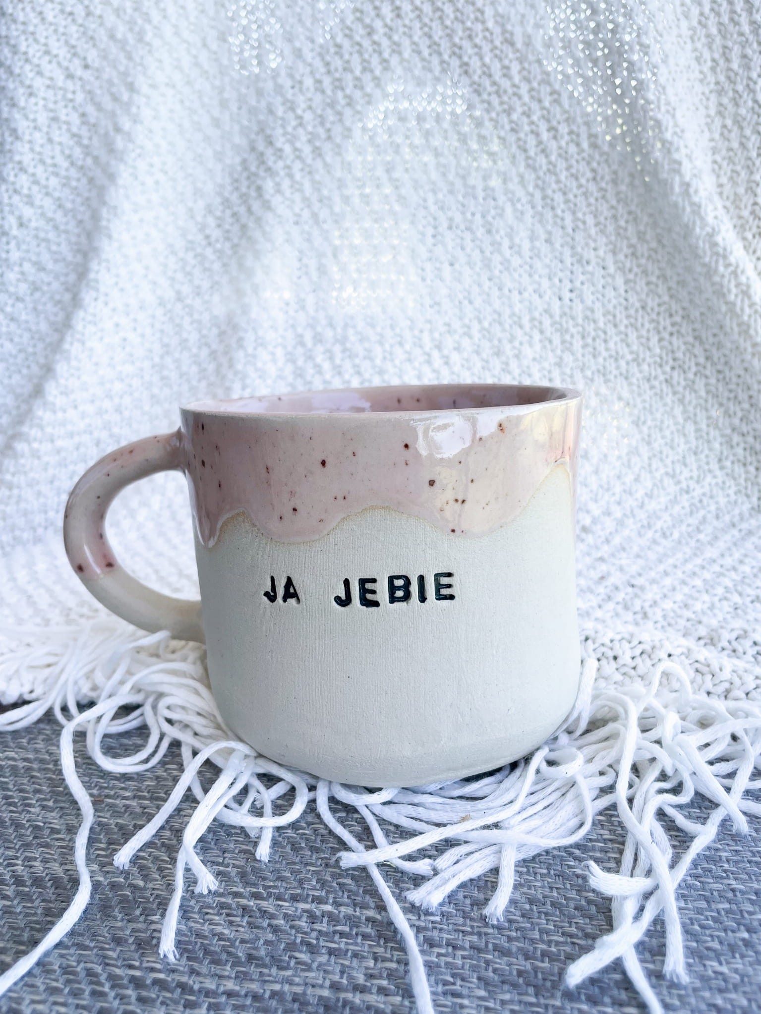 Kubek "Ja Jebię" to idealny towarzysz na dni, kiedy słowa nie nadążają za emocjami. Wykonany ręcznie z dużą dozą humoru i luzu, łączy naturalną ceramikę z zabawnym napisem i kolorowym szkliwem przypominającym konfetti.