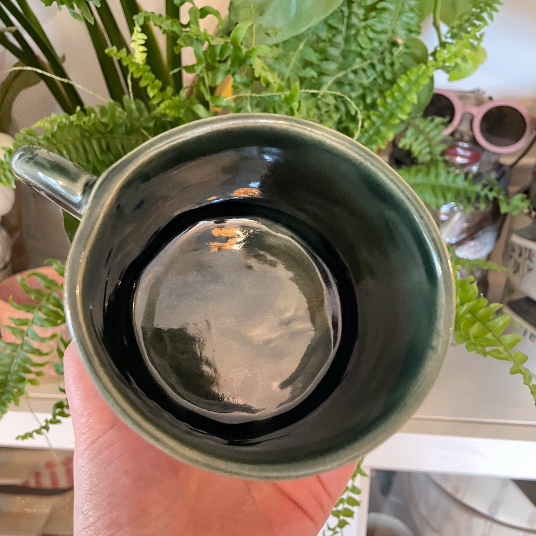 Każdy egzemplarz jest unikatowy: delikatnie nieregularna forma, ręcznie nanoszone szkliwo i naturalne różnice w fakturze sprawiają, że nie ma dwóch identycznych sztuk. Kubek jest solidny, wygodny w trzymaniu i idealny do kawy, herbaty lub wszystkiego, co pomaga wejść w dzień z uśmiechem.