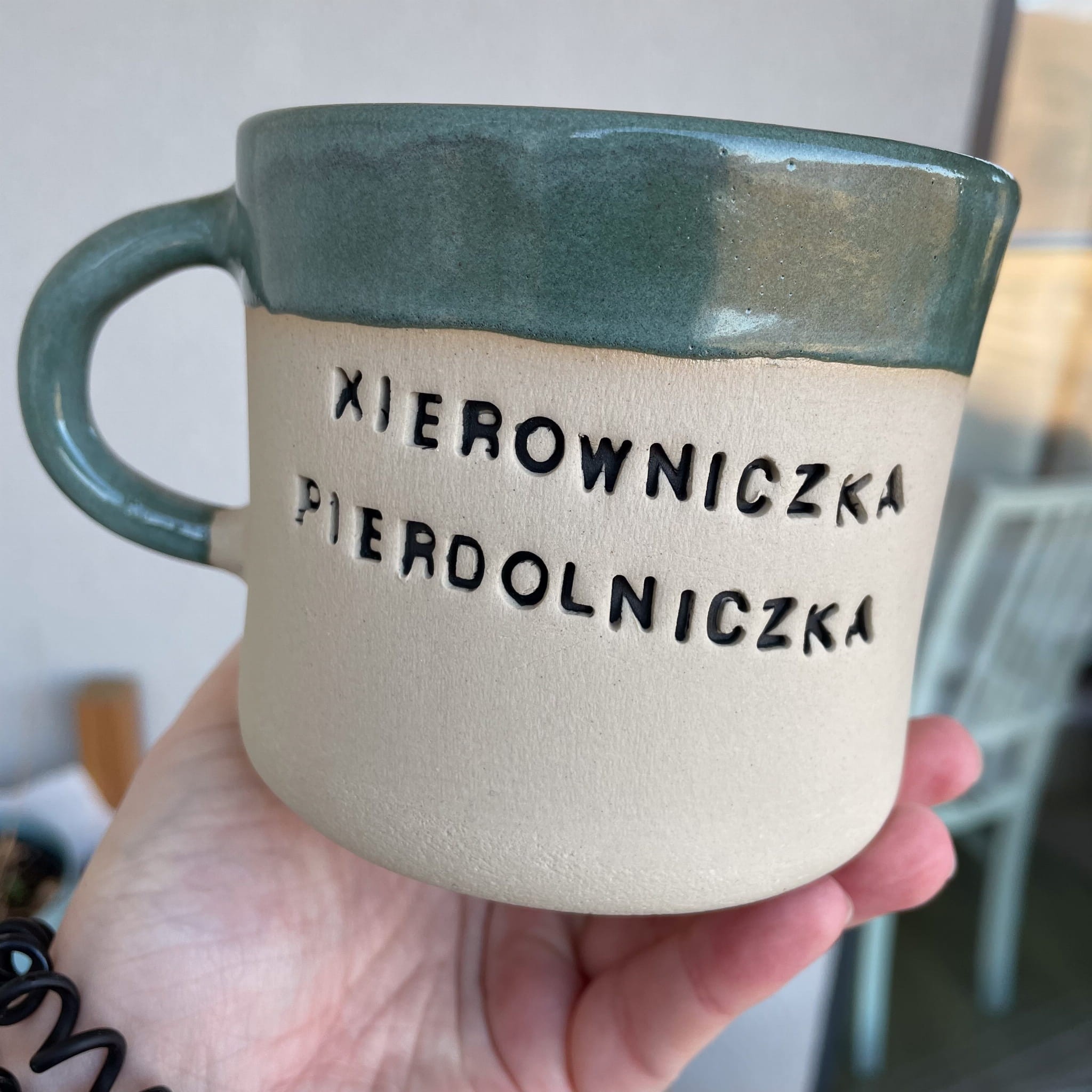 Ceramiczny kubek „Kierowniczka pierdolniczka” – dla wszystkich, którzy wiedzą, że życie bywa trochę chaotyczne, ale ktoś musi nad tym panować.