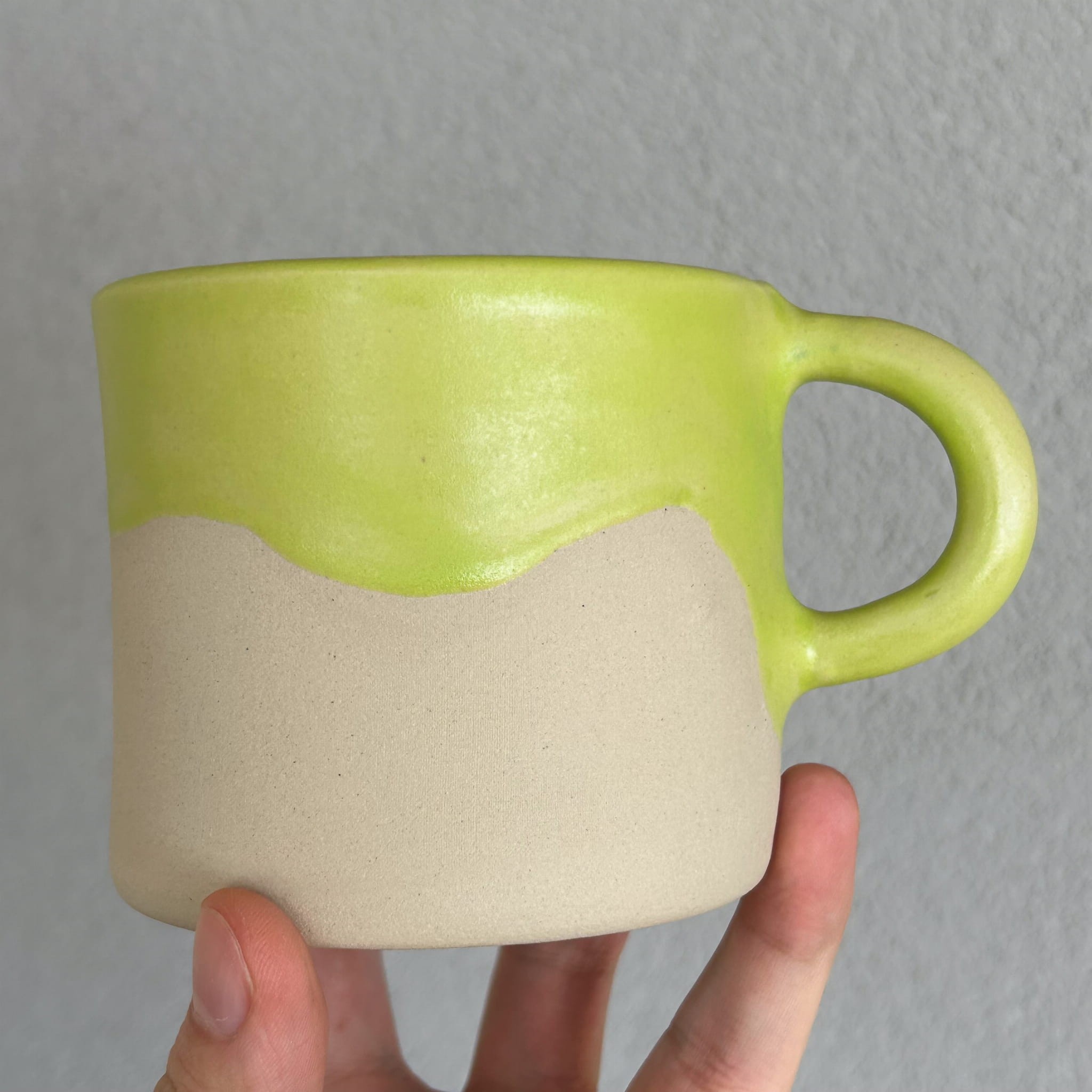 Kubek powstaje ręcznie w pracowni ceramicznej – każdy egzemplarz jest formowany, szkliwiony i wypalany indywidualnie. Dzięki temu każdy kubek ma swój charakter i drobne różnice, które czynią go wyjątkowym.
