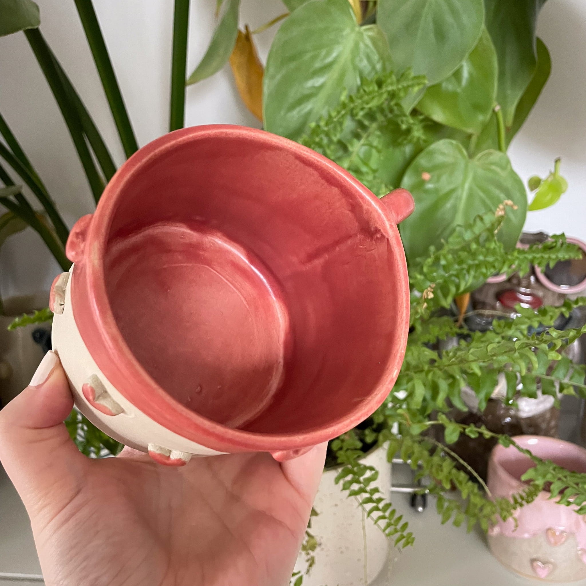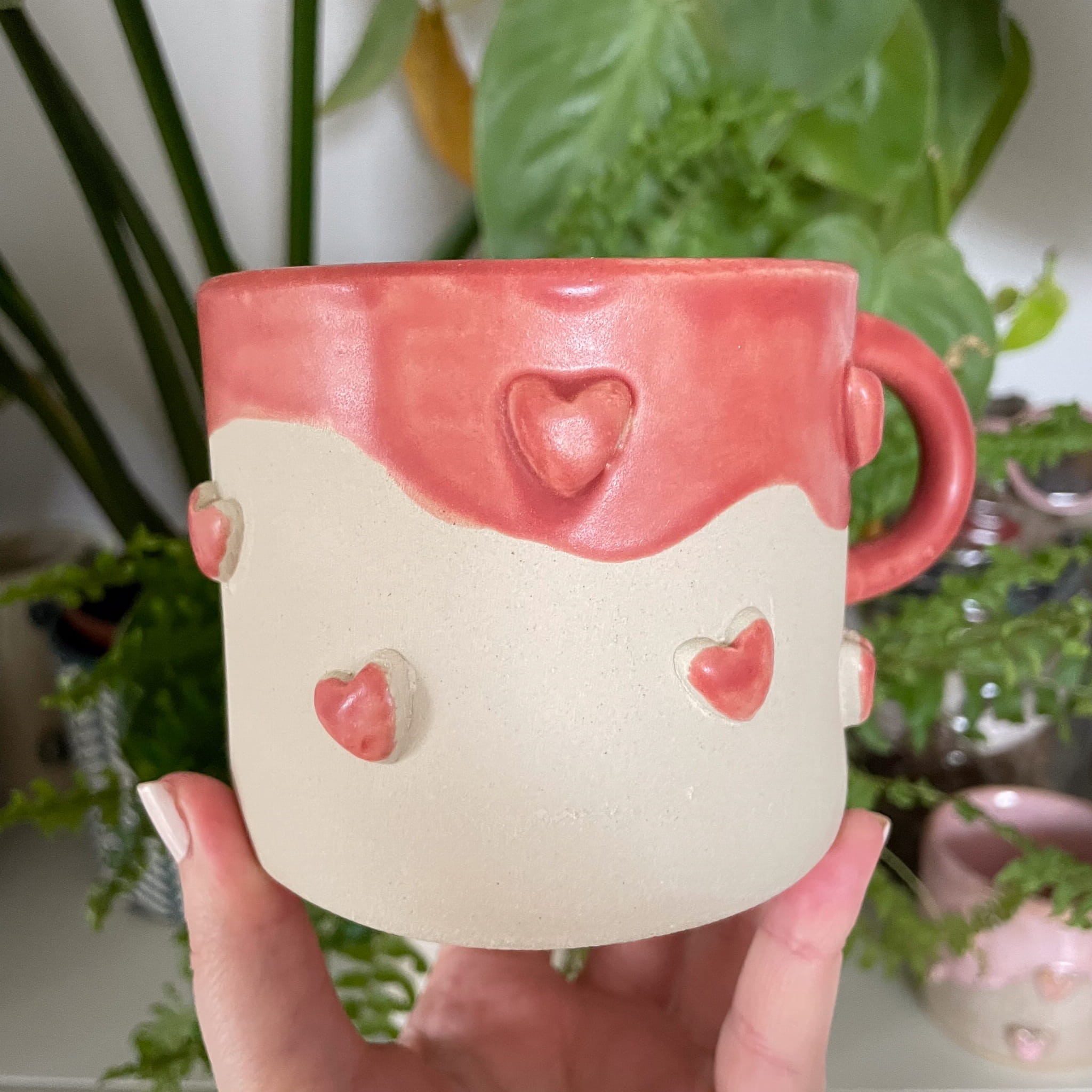 Ręczna produkcja sprawia, że każdy kubek posiada subtelne różnice w fakturze i kolorze — dokładnie tak, jak wyjątkowe są uczucia, które symbolizuje.