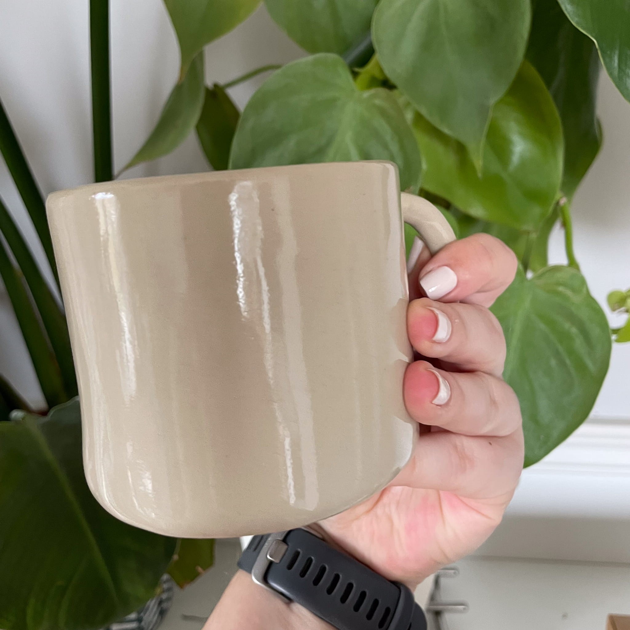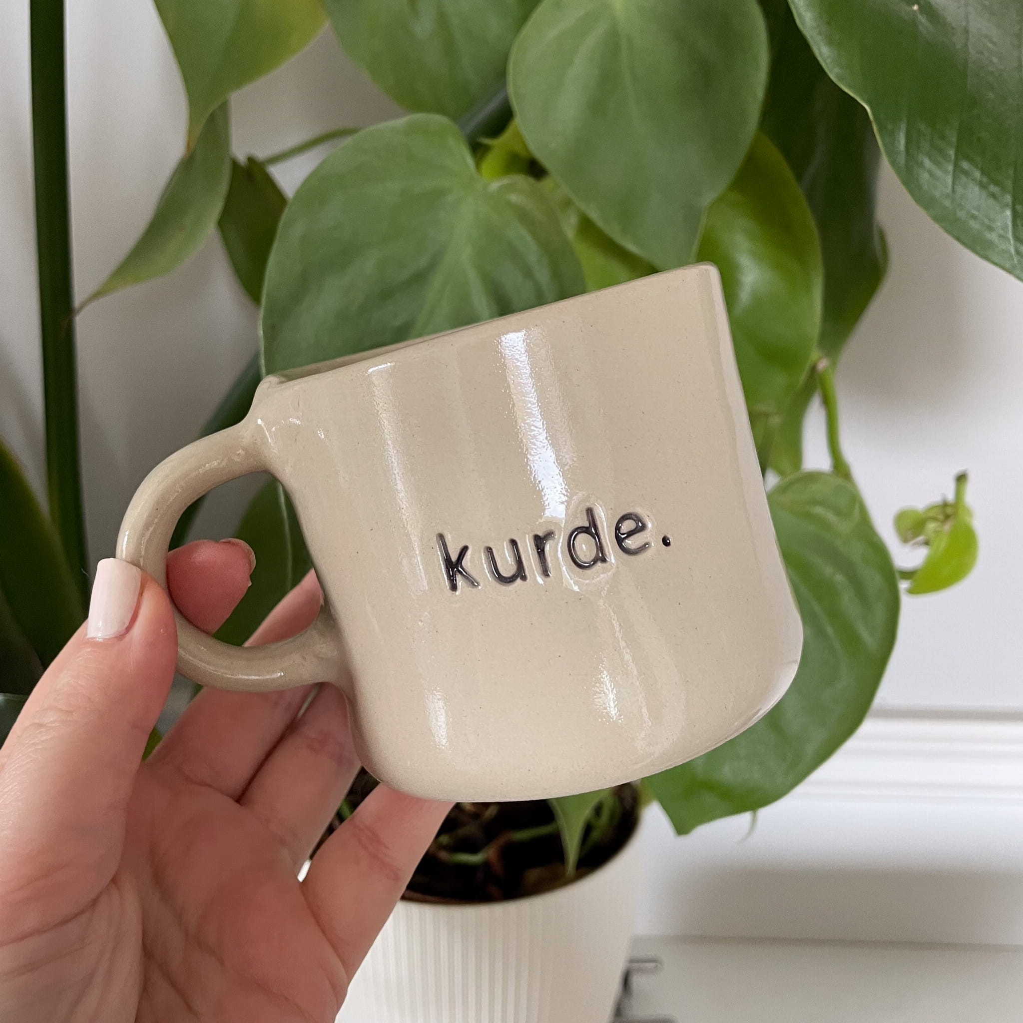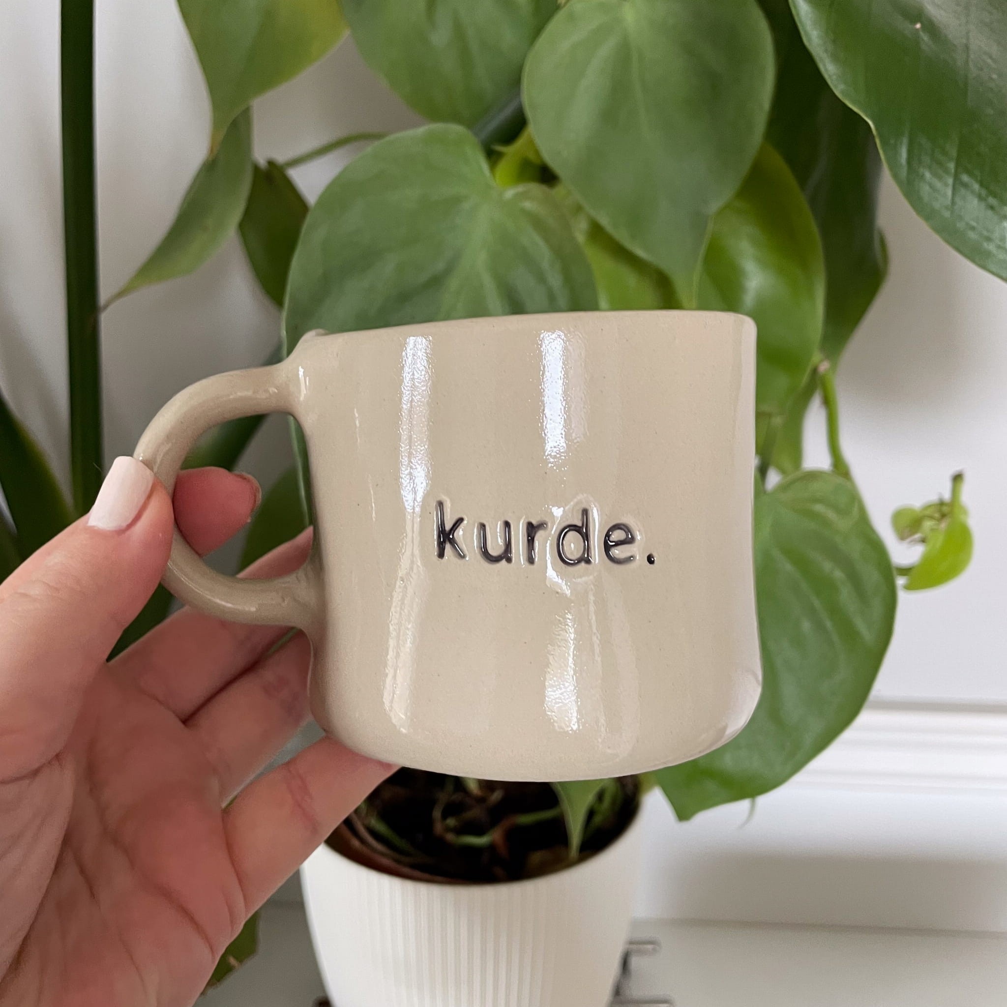 Ręcznie robiony kubek „kurde.” powstał z gliny kamionkowej i został wypalony w wysokiej temperaturze, co zapewnia mu wyjątkową trwałość i odporność na codzienne użytkowanie. Jego beżowy odcień, subtelny połysk i minimalistyczny napis tworzą design, który zachwyca prostotą.