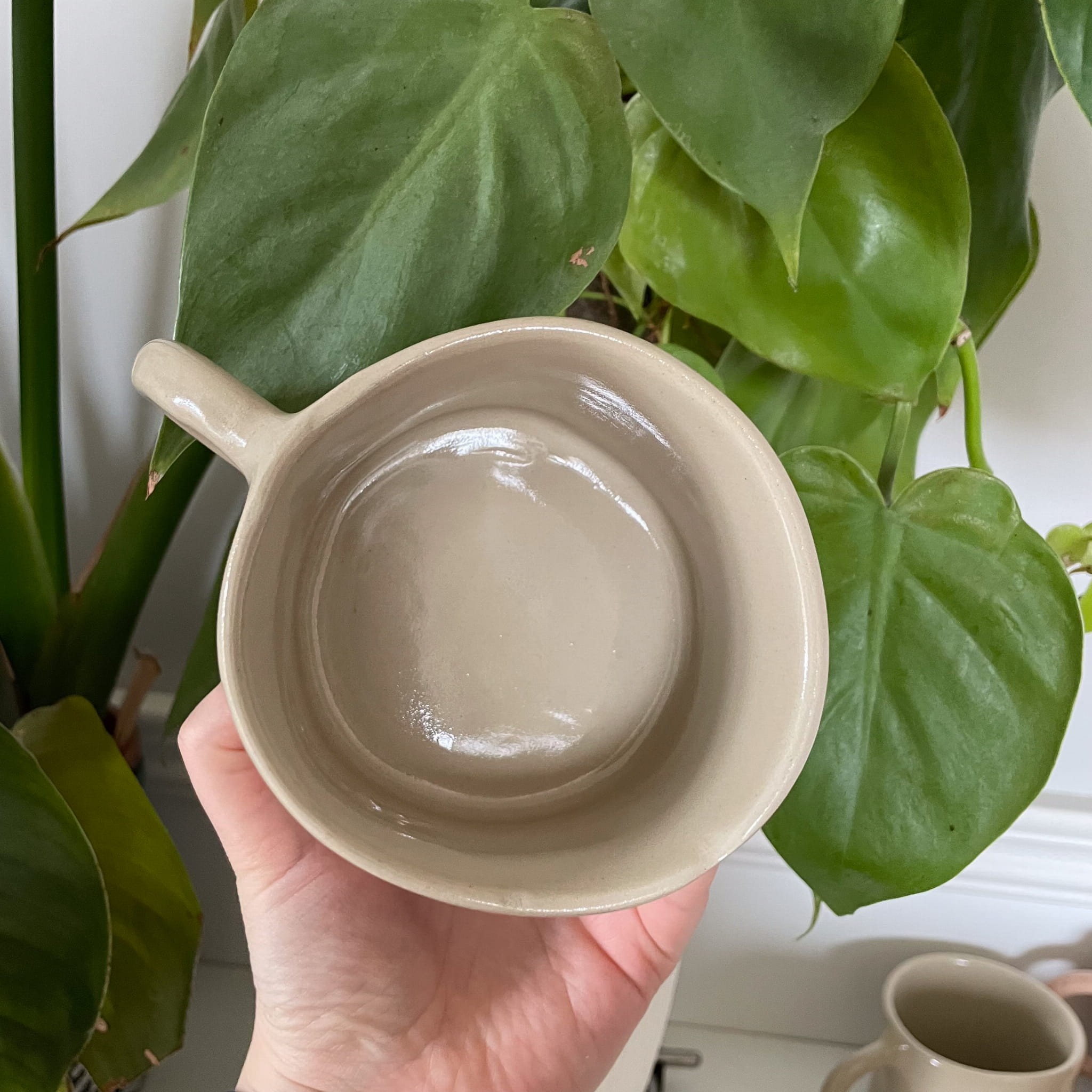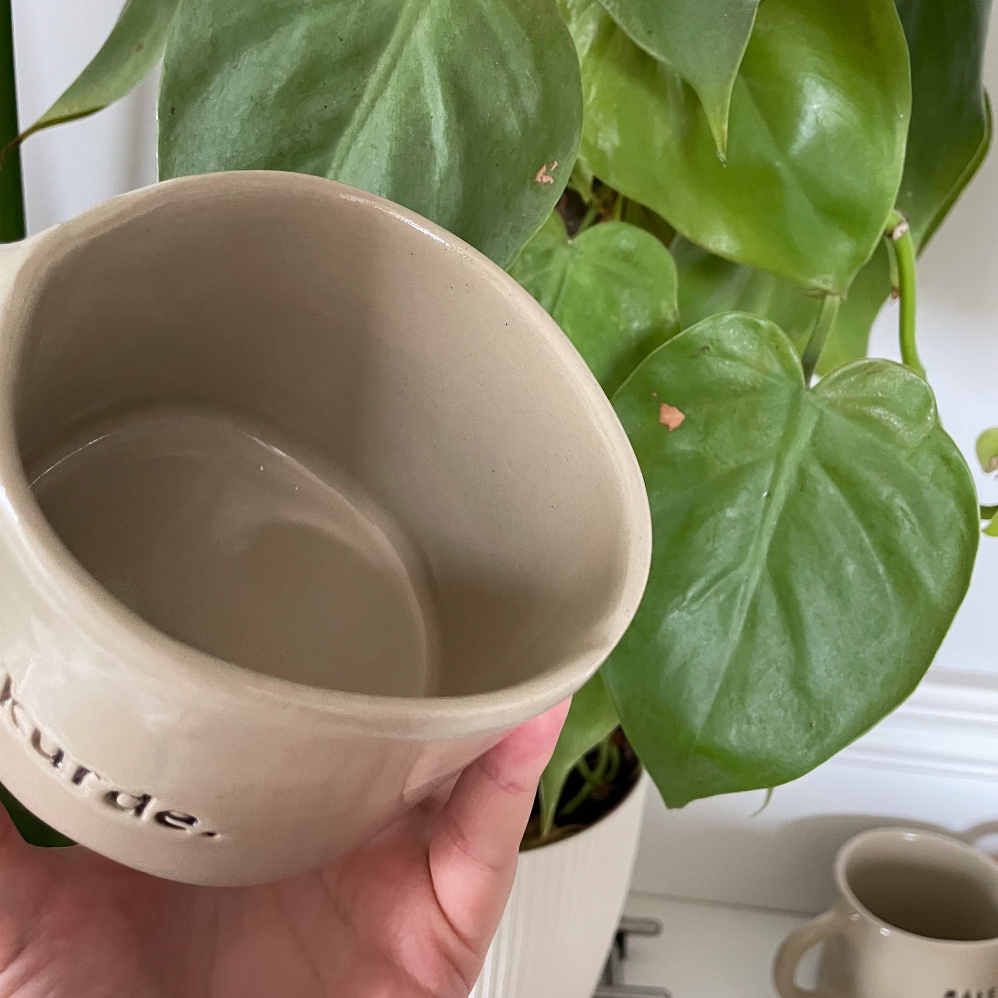Jego naturalny kolor, delikatne szkliwo i oszczędny design sprawiają, że pasuje do każdego wnętrza. To kubek, który zrozumie Cię lepiej niż niejeden człowiek – bez ocen, bez zbędnych słów.