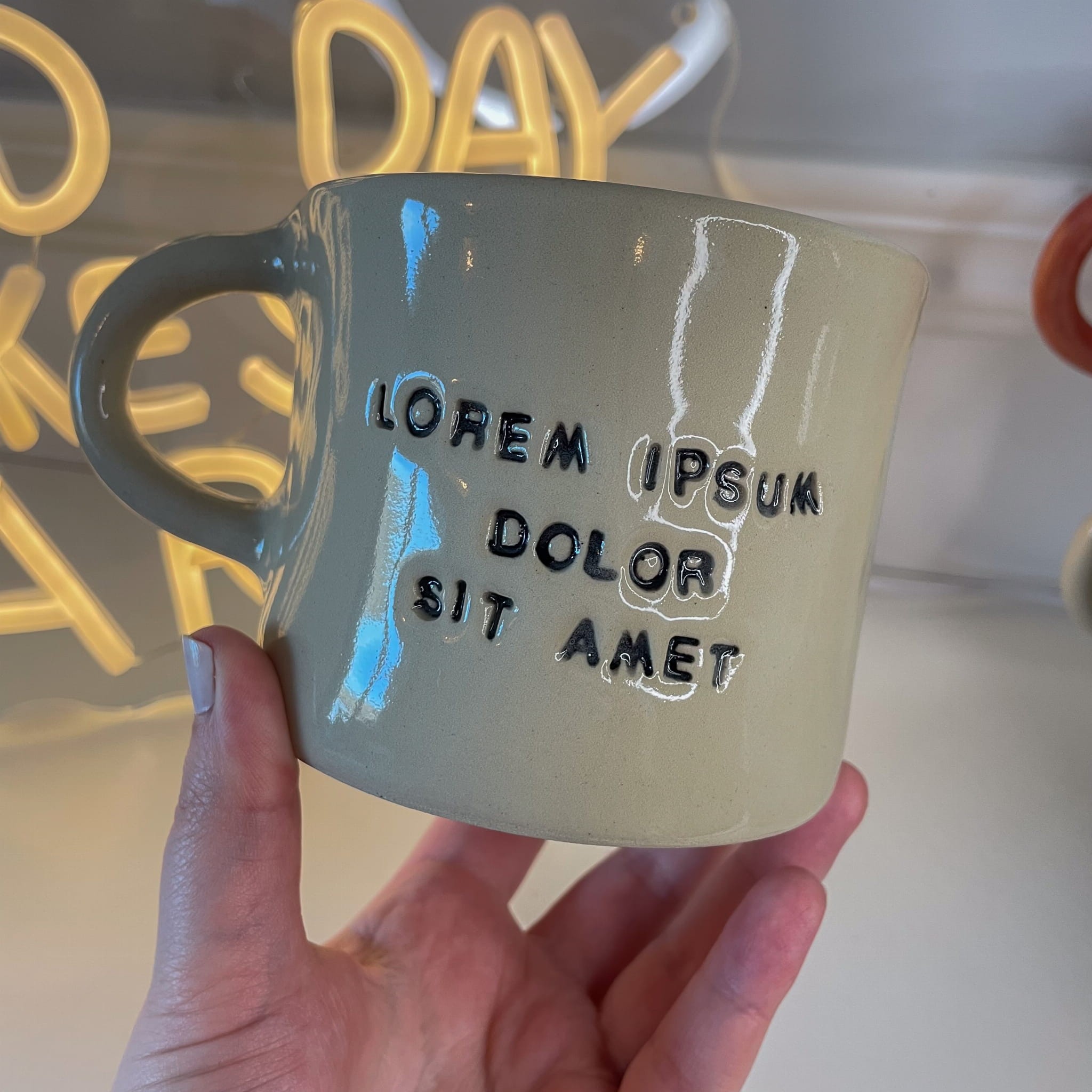 Napis „Lorem Ipsum Dolor Sit Amet” to kultowy tekst zastępczy znany z projektowania stron internetowych, DTP i świata UX/UI. Ten kubek to subtelne (albo wcale nie takie subtelne) mrugnięcie okiem do branży kreatywnej.