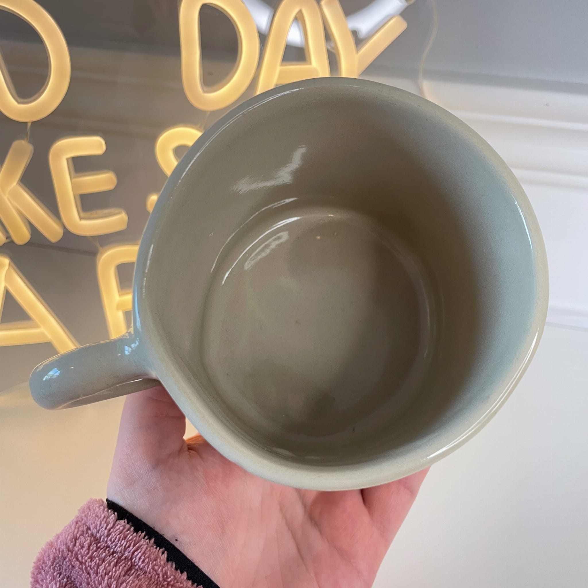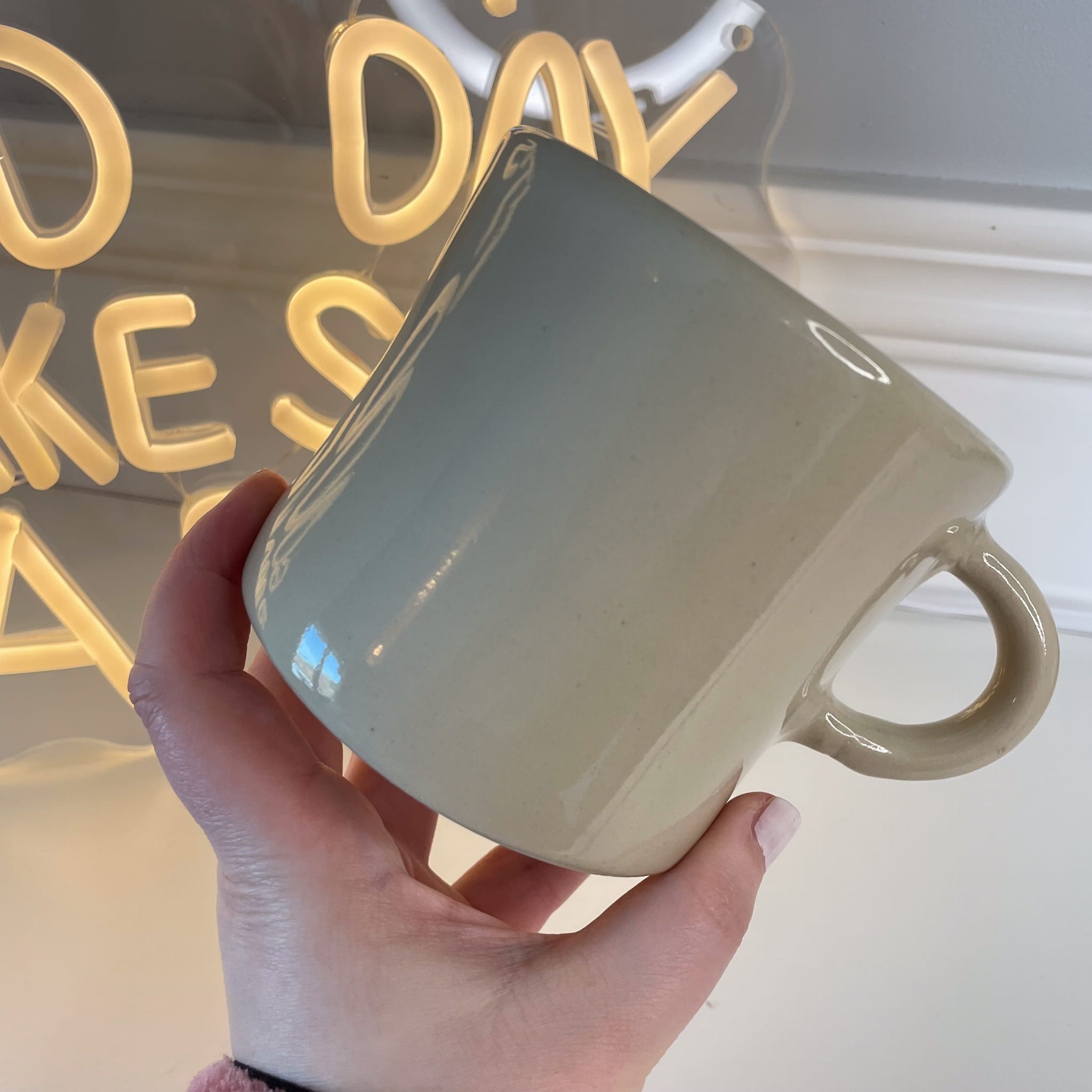 Każdy kubek powstaje ręcznie, dlatego drobne różnice w szkliwieniu są naturalną cechą ceramiki handmade.