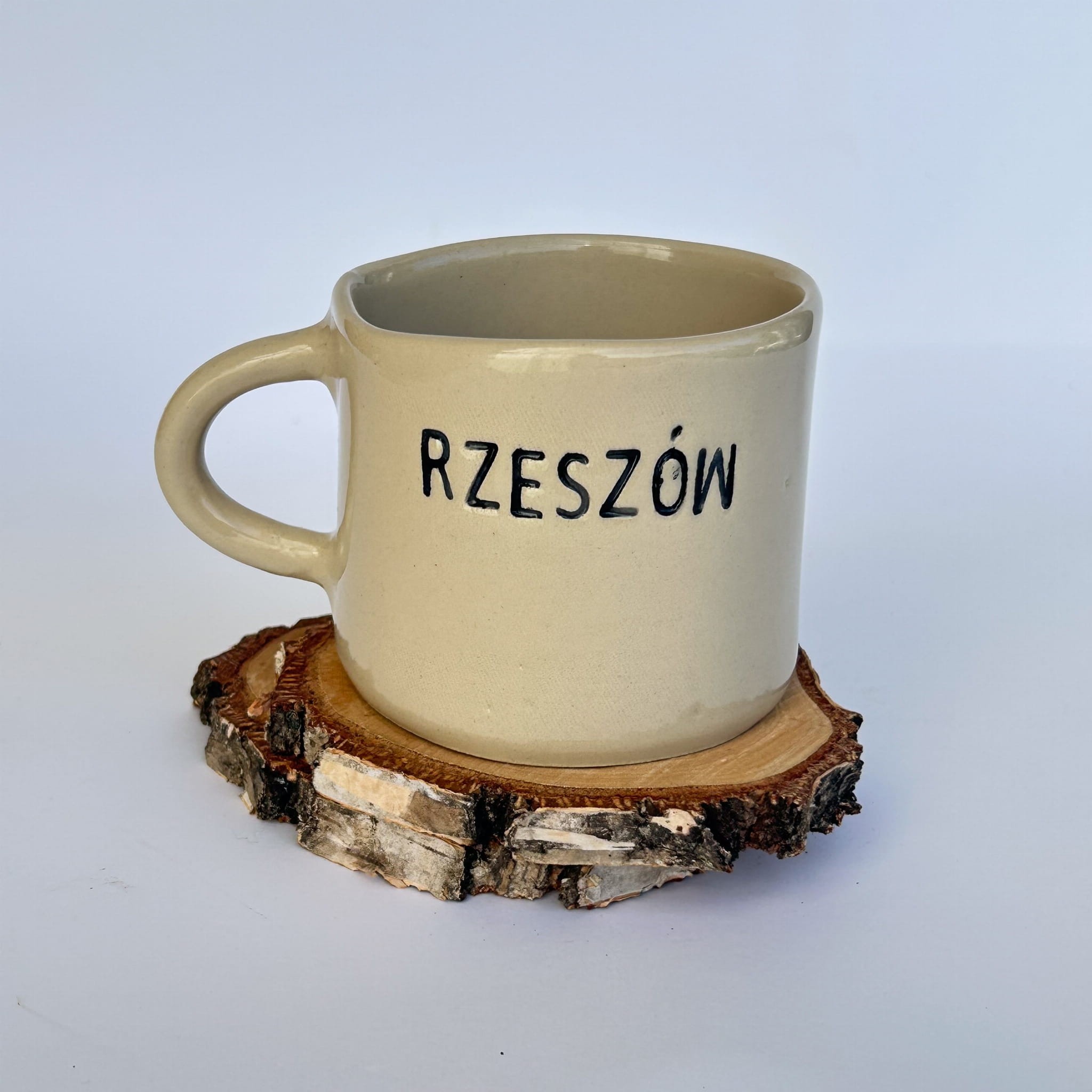 Kubek „Rzeszów” to hołd dla lokalności i przedmiot codziennego użytku, który niesie ze sobą dumę z miejsca, które dobrze się zna. Na froncie znajduje się relief symbolu Rzeszowa, a na odwrocie odręczny napis. Klasyczna forma i kremowe szkliwo sprawiają, że będzie pasować do każdego wnętrza.