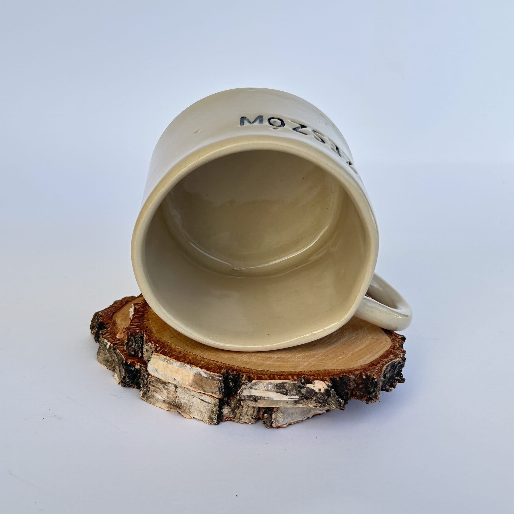 Ten konkretny egzemplarz ma lekkie, punktowe niedoskonałości szkliwa widoczne z bliska. Nie mają żadnego wpływu na funkcję kubka ani jego trwałość. Dla niektórych to jedynie dodatkowy znak ręcznego wykonania — autentyczność zamiast perfekcji fabryki.