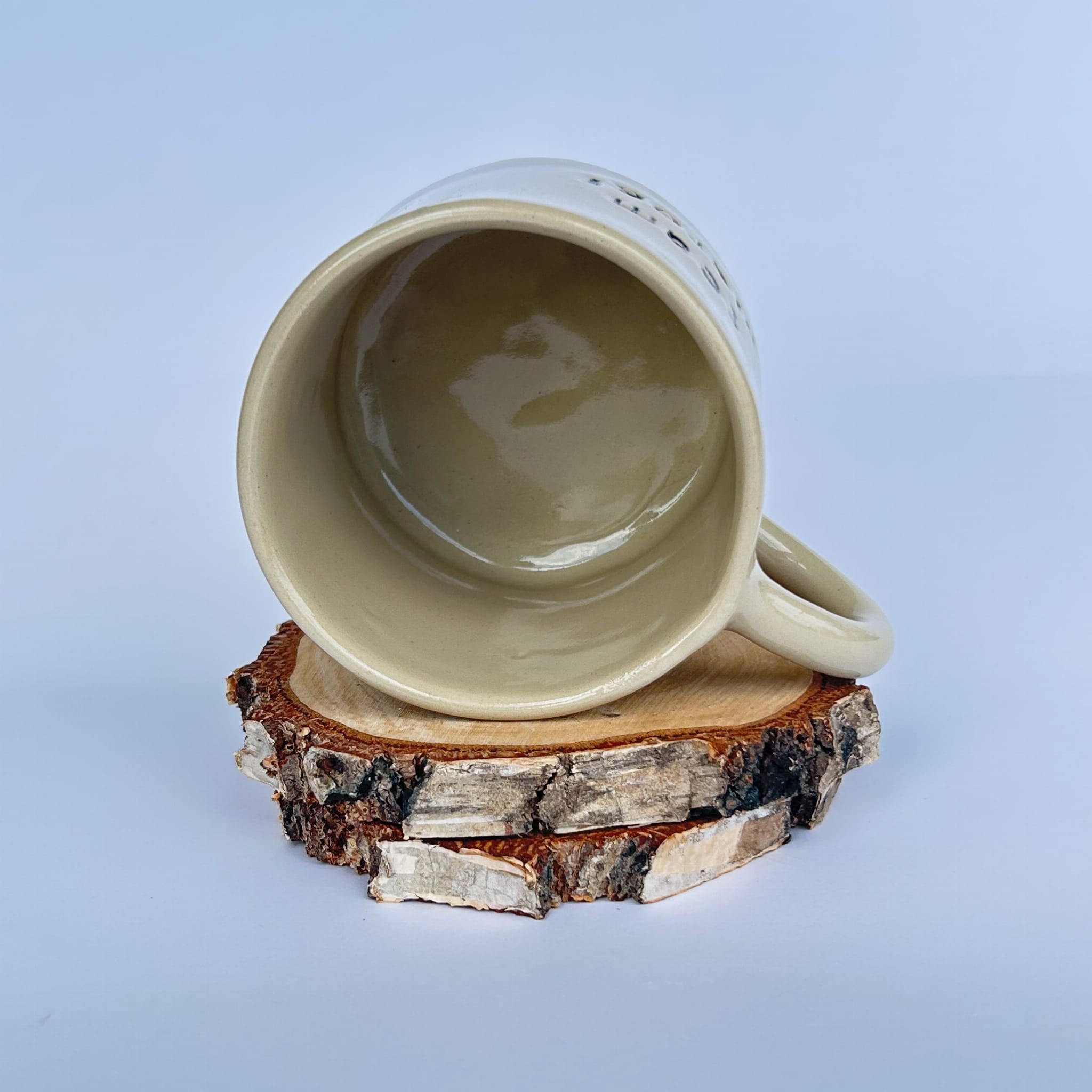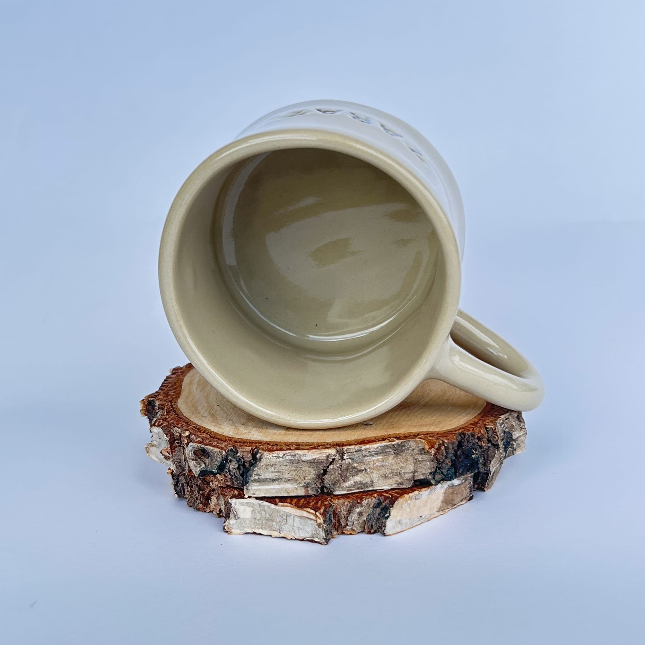 Kubek „team pierogi” to hołd dla wszystkich, którzy wiedzą, że pierogi to nie tylko jedzenie, to styl życia. Wykonany w całości ręcznie z naturalnej gliny kamionkowej, wypalany w wysokiej temperaturze i pokryty szkliwem w ciepłym, kremowo-beżowym odcieniu. Minimalistyczny napis „team pierogi” został odciśnięty i wypełniony czarnym pigmentem, dzięki czemu nadaje kubkowi charakteru i humoru.