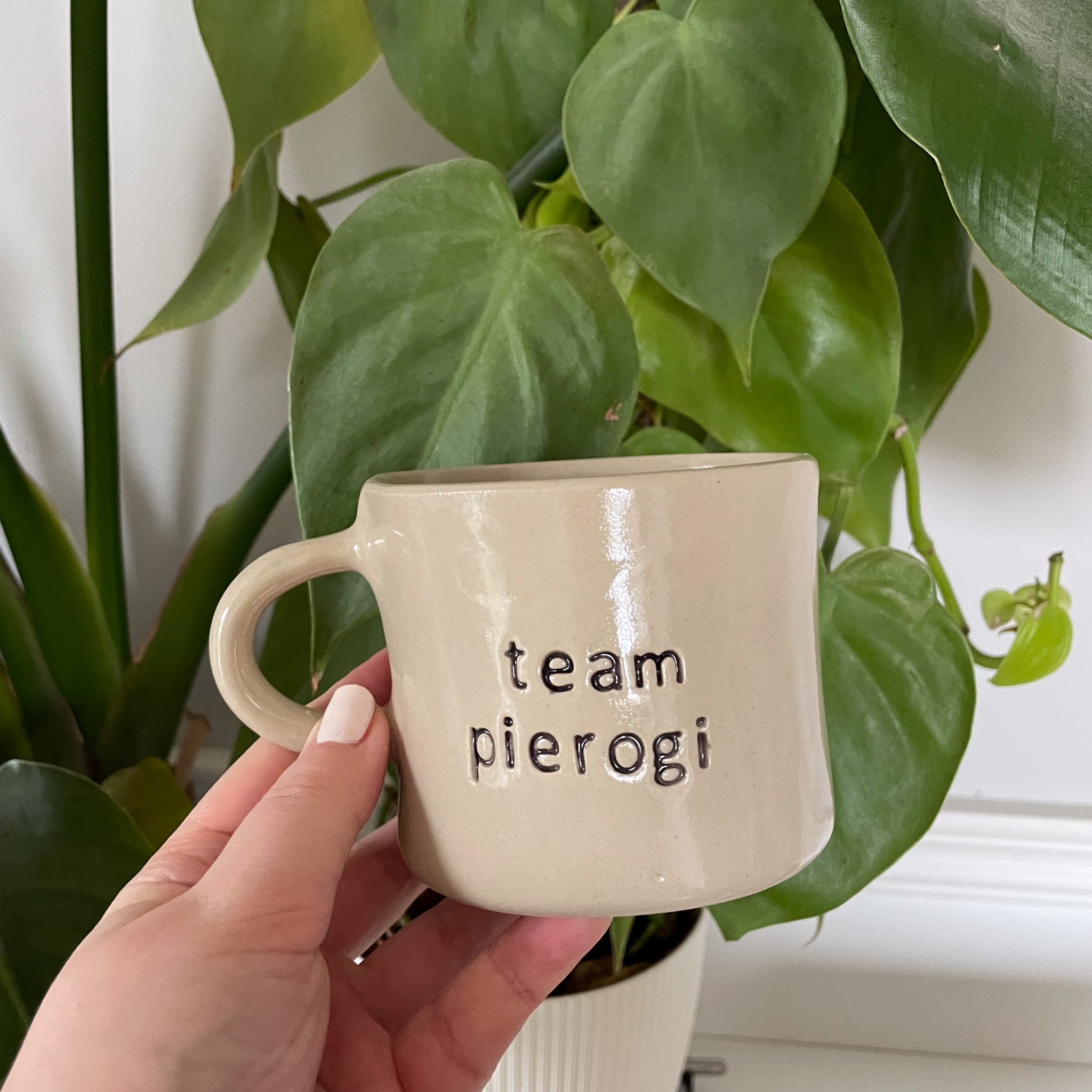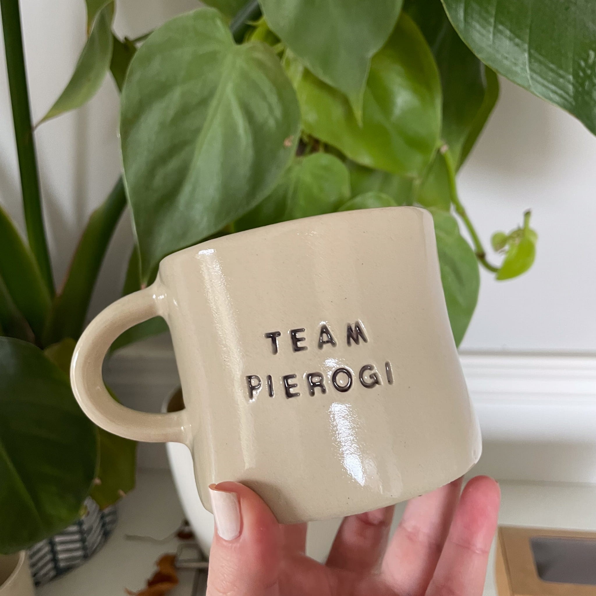 Niech każdy łyk przypomina Ci, z jakiego teamu jesteś! Kubek „TEAM PIEROGI” to ręcznie robiona ceramika z przymrużeniem oka. Wykonany z gliny kamionkowej, wypalany w wysokiej temperaturze i pokryty szkliwem w naturalnym odcieniu beżu.