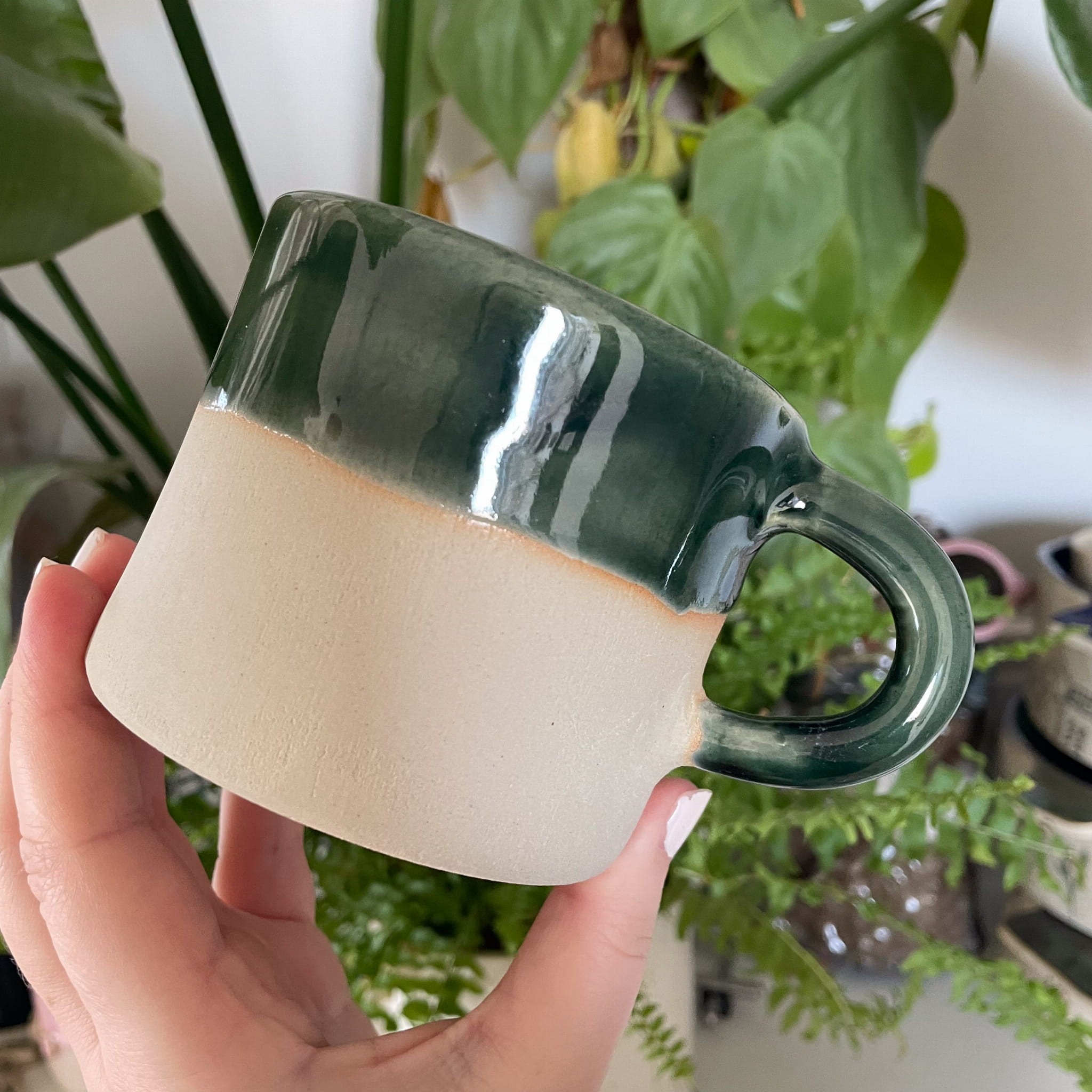 Połączenie kremowej, matowej bazy z głęboką, zielono-morską glazurą górnej części tworzy charakterystyczną estetykę GLIFY: naturalną, spokojną i nieidealną dokładnie w taki sposób, jaki nadaje przedmiotom duszę.