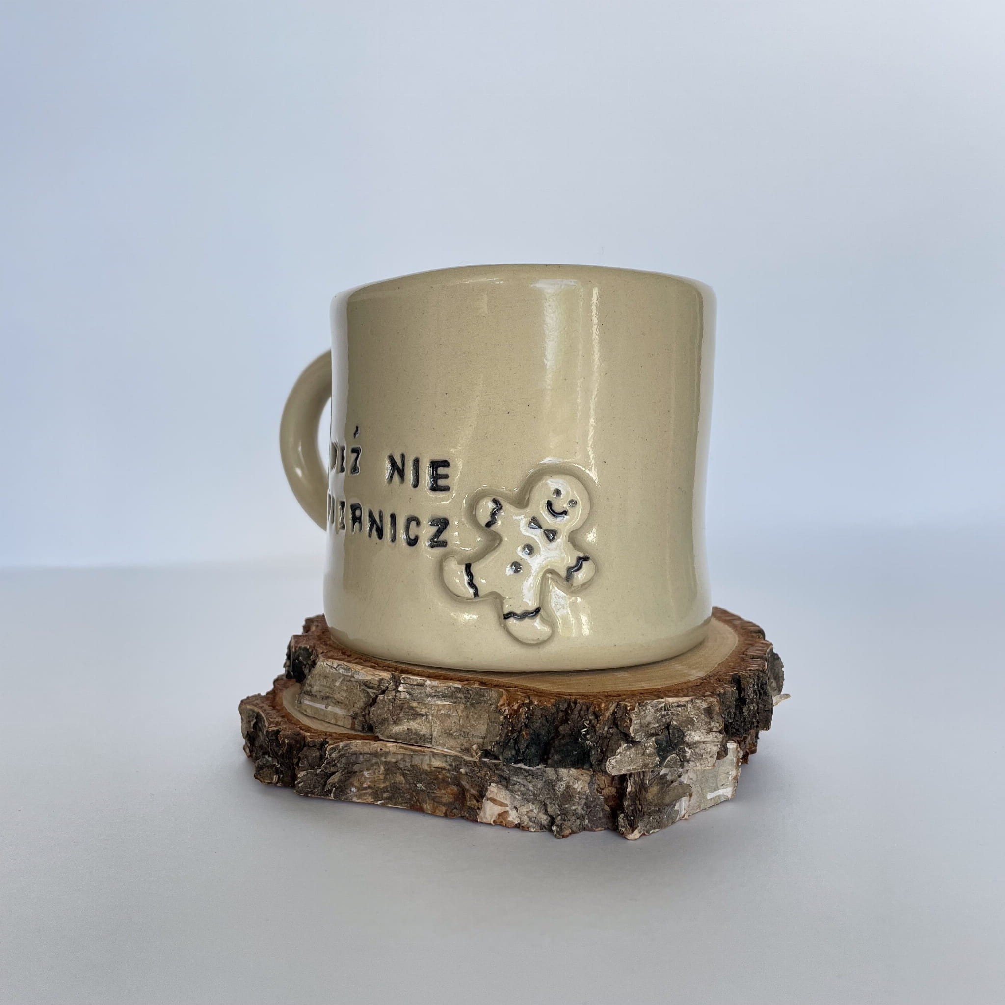 Ręcznie wykonany ceramiczny kubek z napisem „Weź nie piernicz” to humorystyczny akcent na zimowe dni i doskonały pomysł na prezent świąteczny. Zdobiony uroczym piernikowym ludkiem, łączy w sobie ciepły, świąteczny klimat z lekkim dystansem do przedświątecznej gorączki. Idealny dla osób z poczuciem humoru, które cenią oryginalne rękodzieło i chcą wprowadzić odrobinę luzu do zimowych poranków.